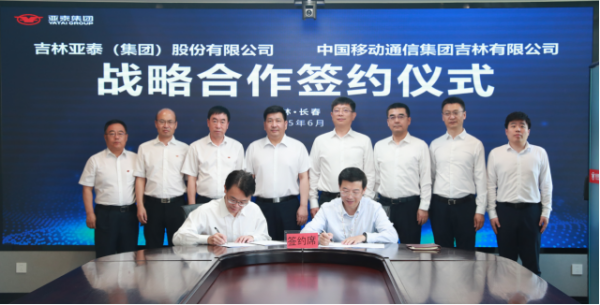 2025年6月24日下午,亚泰集团与中国移动通信集团吉林有限公司签署战略合作协议。亚泰集团党委书记、董事长陈铁志,副董事长、总裁刘树森,中国移动吉林省公司党委副书记、董事、副总经理金巍见证签约;亚泰集团副总裁王劲松同中国移动吉林省公司党委委员、董事、副总经理郑江南签约。